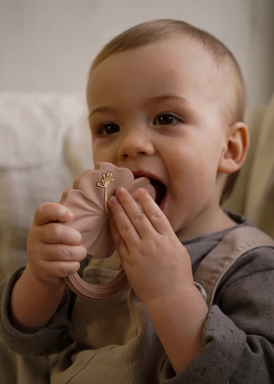 Anneau de Dentition en Silicone Hibiscus - Beige