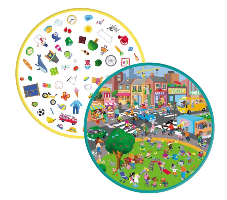 Des objets et des éléments à retrouver mais aussi des contraintes à trouver : un objet rouge, un objet rond ... qui font appel aux notions apprises entre 3 et 5 ans.