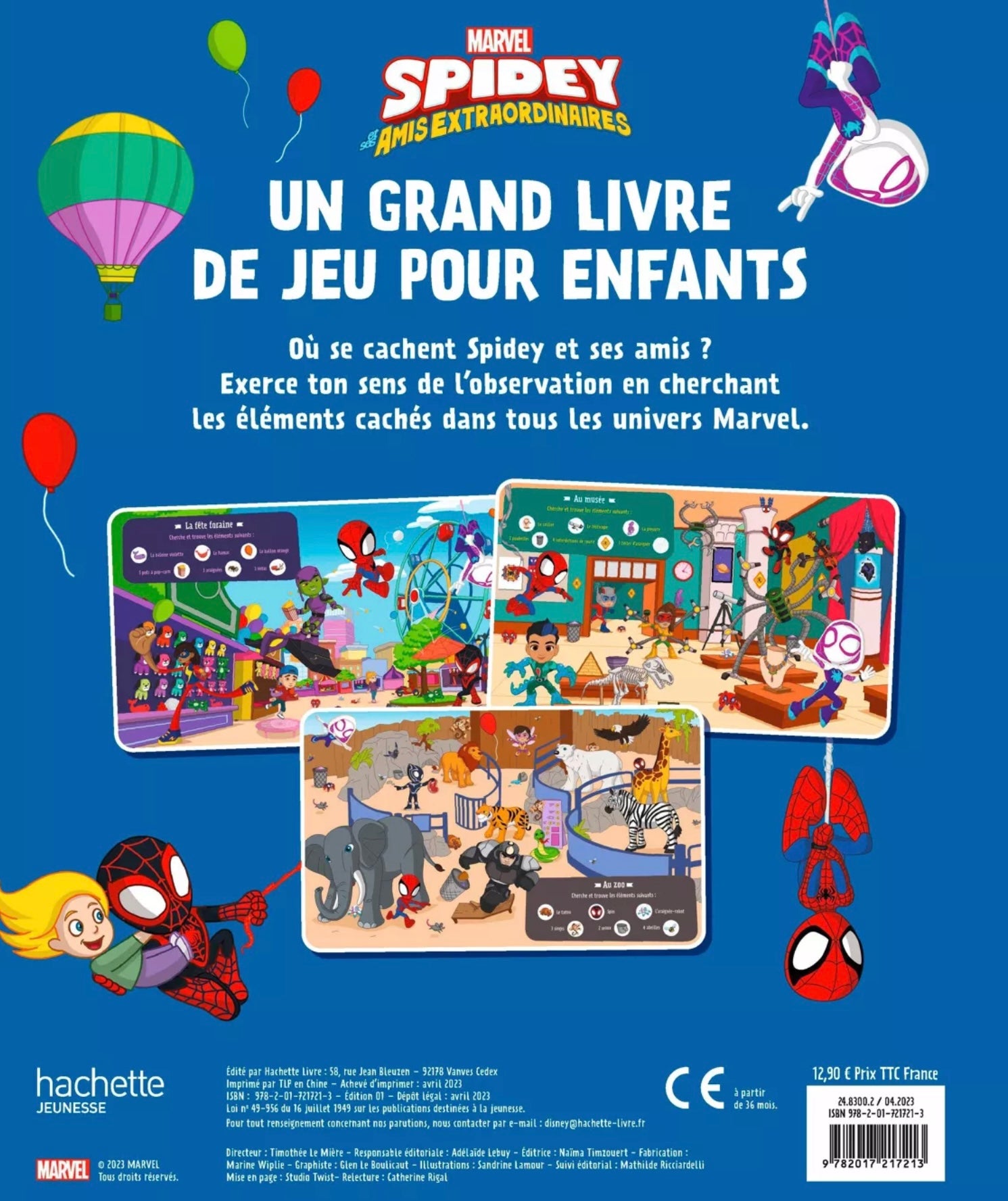 9 scènes colorées pour s’amuser avec tous les personnages phares de la série Spidey et ses amis extraordinaires ;
