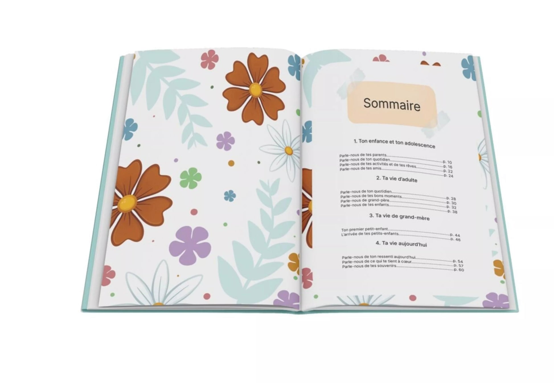 - ❓ Un trésor de questions : plus de 100 questions pour l’aider à raconter ses plus beaux souvenirs et émotions.