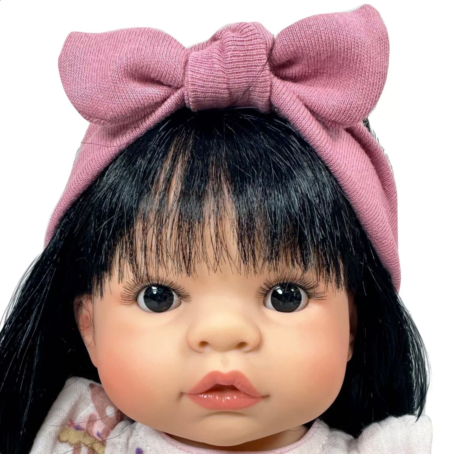 De plus, elle a des cils en cheveux naturels et du brillant sur les lèvres.