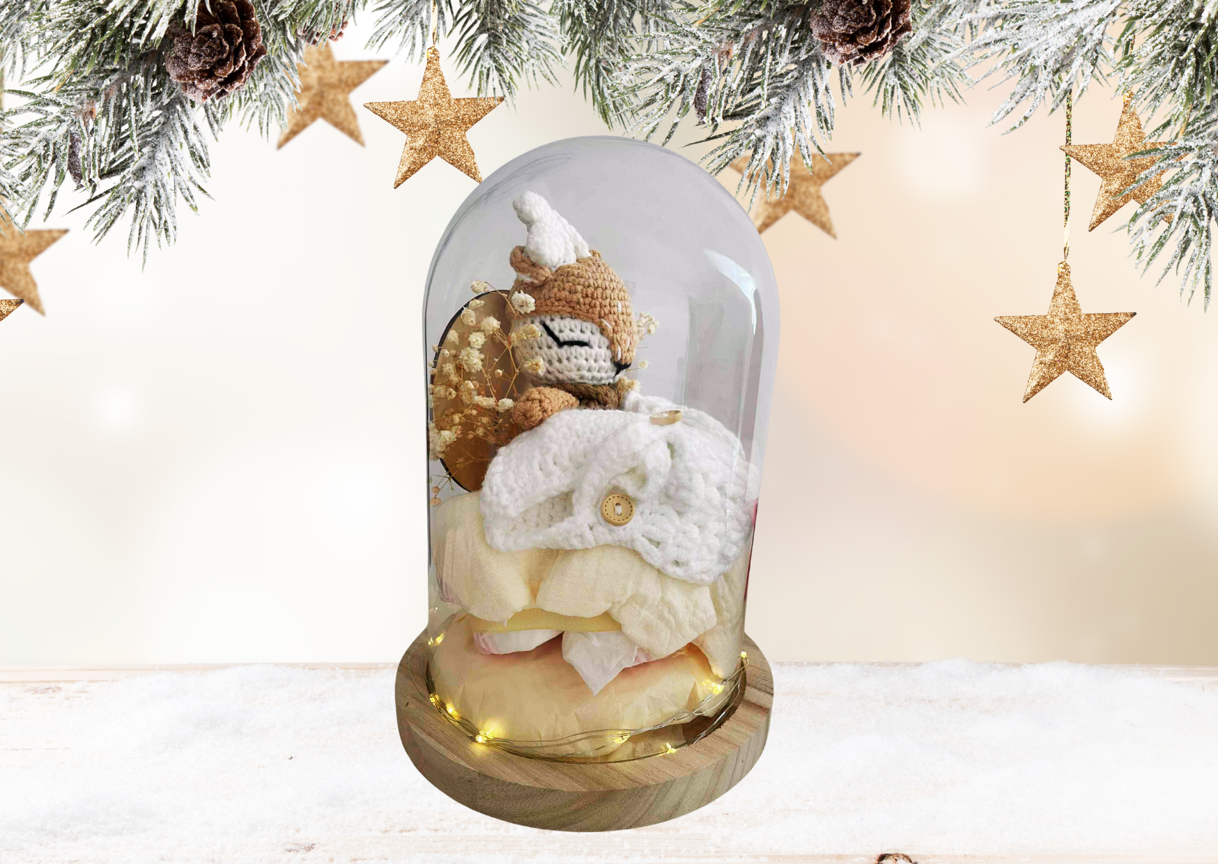 Sous cette délicate cloche en verre, se cache un univers magique composé de douceur et de tendresse.